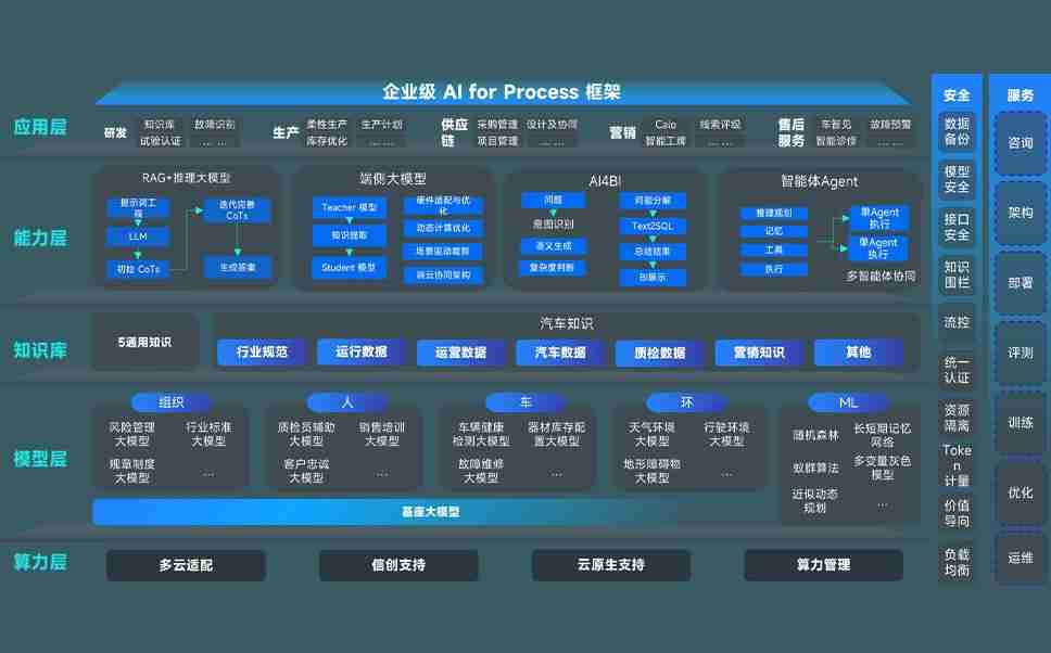 NG娱乐问学智车解决方案是一套基于AI技术的汽车行业智能化系统,,,覆盖从底层算力到顶层AI应用的全栈方案。。。方案由算力层、、、模型层和应用层组成:算力层,,方案支持多种一体机配置,,,具备云端灵活部署、、、多云适配以及动态优化计算资源的能力;模型层,,,NG娱乐问学平台版提供了企业级AI应用一站式构建与管理平台,,,支持基于后训练强化技术的汽车企业专属模型的训练、、评测和运营;应用层,,,,NG娱乐问学DeepSeek版提供包括超级员工、、、、智能招采、、、智能营销、、、智能客服、、、AI for BI等一系列解决方案,,,,可助力汽车行业实现数字化转型,,让管理更智能、、、、响应更敏捷。。。